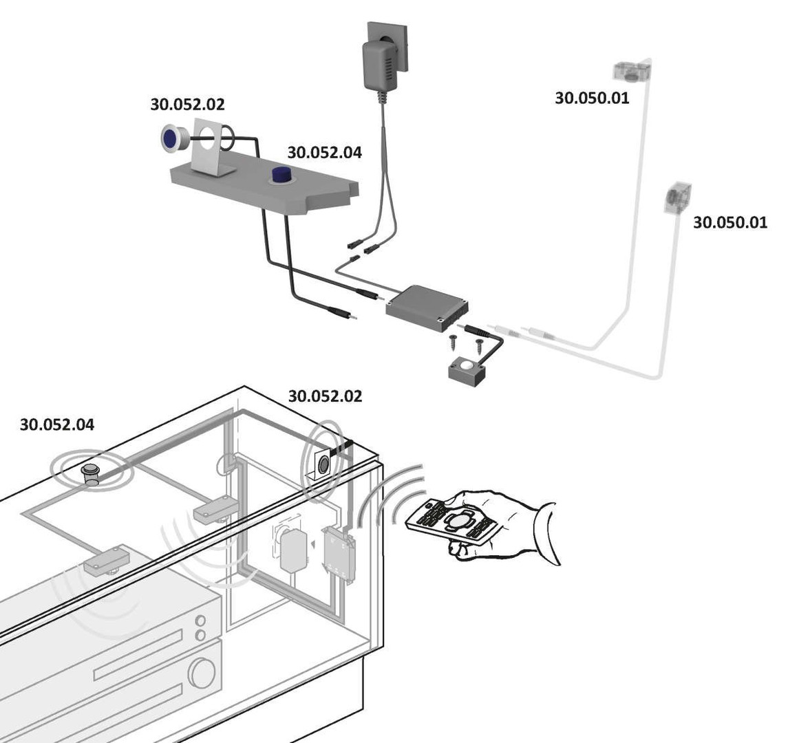 - Das Infrarot-Signal von einer Fernbedienung wird vom Empfänger aufgenommen und in das Möbel weitergeleitet