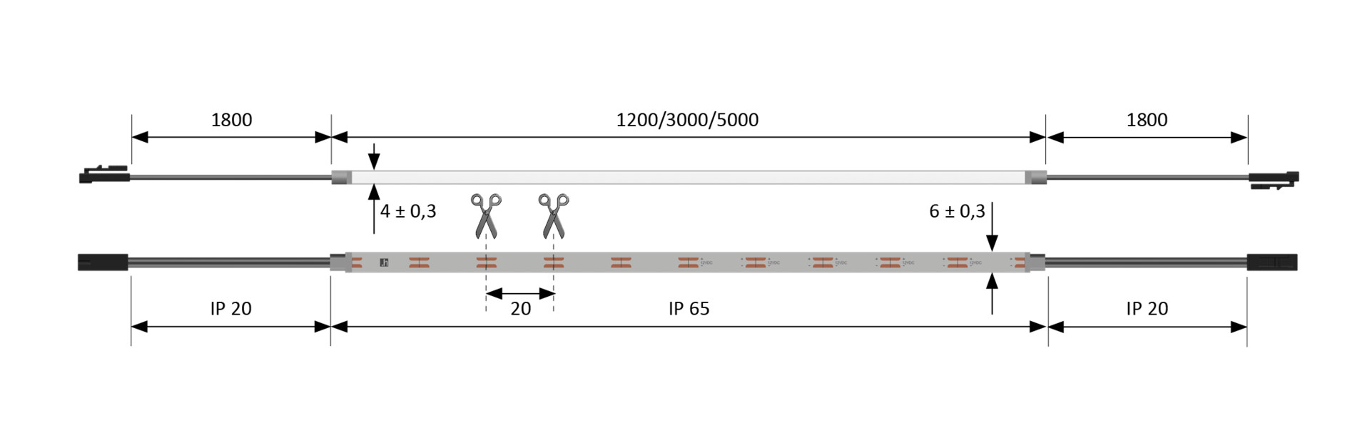 | Ausführung | L=1,2m 6W/m LTG 2x1,8m M1 |