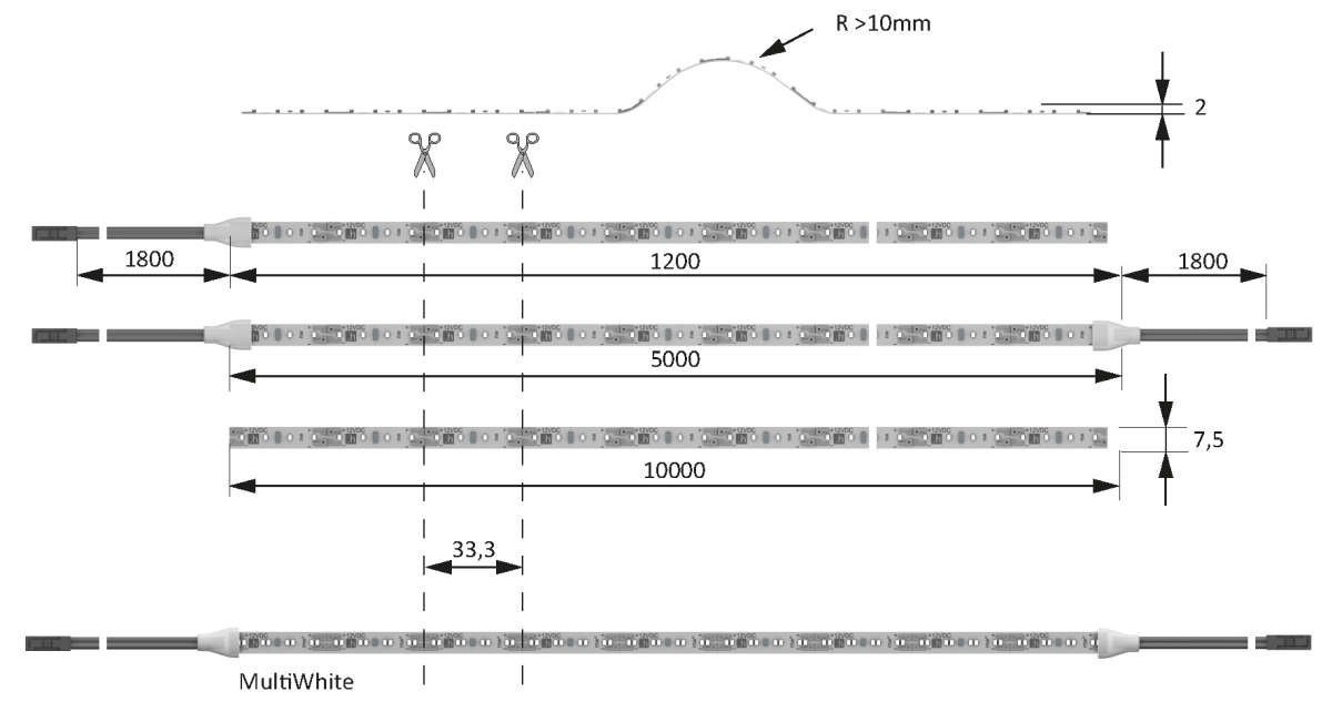 • Zur 10 m Rolle werden Einspeiser bzw. Anlötleitungen benötigt