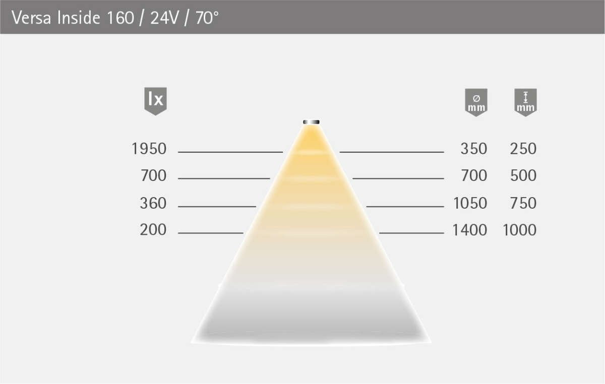 - Gleiche Helligkeit wie Versa Inside 160(12 Volt DC)