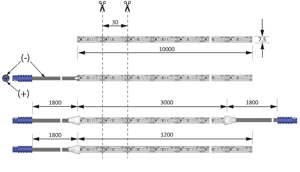 | Variante | kalt weiß 24VDC, 3000 mm |