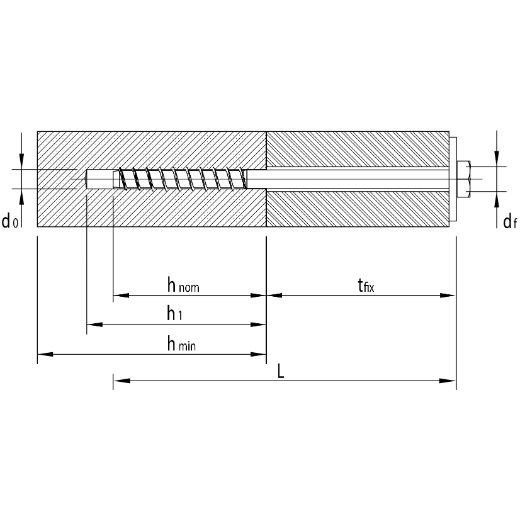 | Einschraubtiefe, hnom standard | 90/75 mm |