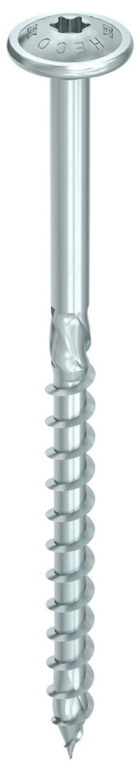 Die HECO-TOPIX-plus Tellerkopfschraube ist mit ihren Eigenschaften komplett auf den konstruktiven Holzbau ausgelegt. Sie verfügt über einen größeren Kopfdurchmesser und kann dank dieser vergrößerten Auflagefläche deutlich höhere Lasten als Senkkopfschrauben abtragen. Gleichzeitig reduziert sie die Anzahl der notwendigen Befestigungspunkte erheblich. Die Variante mit Teilgewinde verfügt über Schaftrippen, die das Einschraubdrehmoment reduzieren und eine spannungsfreie Verbindung schaffen. Für leichteres und schnelles Einschrauben sorgt die optimale Gewindesteigung. Zusätzlich gewährleistet die patentierte HECO-TOPIX-Spitze eine reduzierte Spaltwirkung und ermöglicht die schnelle Verschraubung ohne Vorbohren oder Vorsenken, egal ob mit weichem Bauholz oder harten Edelhölzern. Das Ergebnis: eine schnelle und sichere Montage mit bis zu 30 Prozent weniger Verarbeitungsaufwand.
