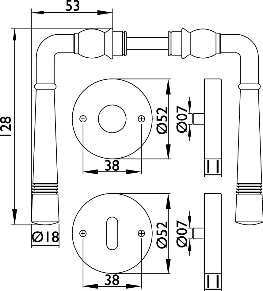 ZT-Drückergarnitur 1174 LYON, mit Rosetten 2031 K, Ausf.: BB, mit Rückholfeder, Türstärke 38 - 42 mm, Oberfl. 04 (Glanzchrom) |