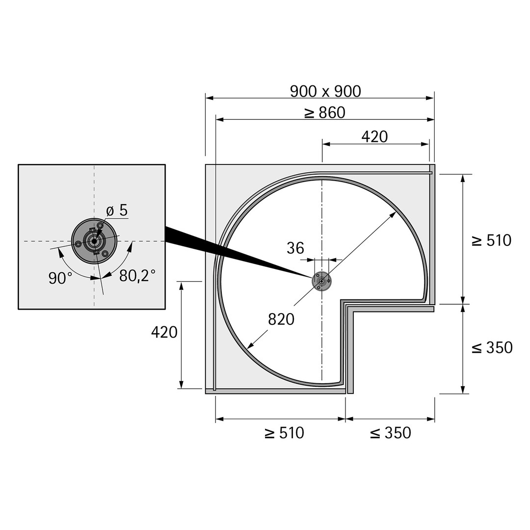 Für Schrankbreite 900 x 900 mm