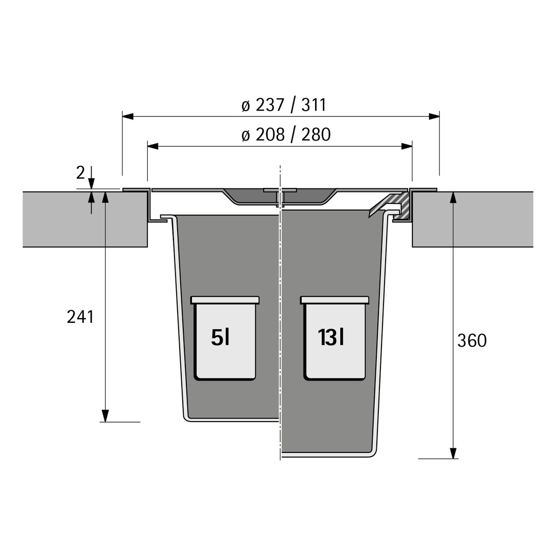 HETTICH Bin.it Drop HAU Abfallsystem D310mm 13l Edelstahl/Kst.schwarz