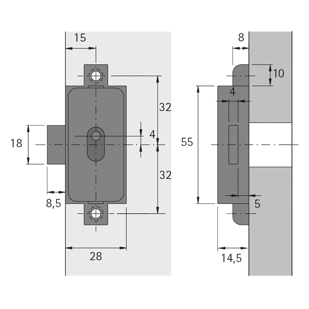 Drehstangenschloss, D 15, zum Anschrauben, rechts