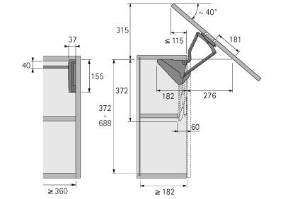 HETTICH Hochschwenk-Beschlag Lift Advanced HS, 372 - 688