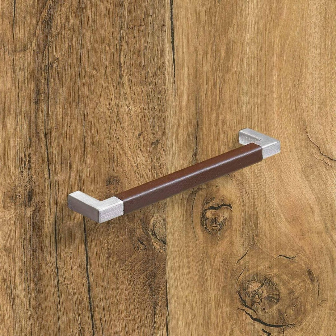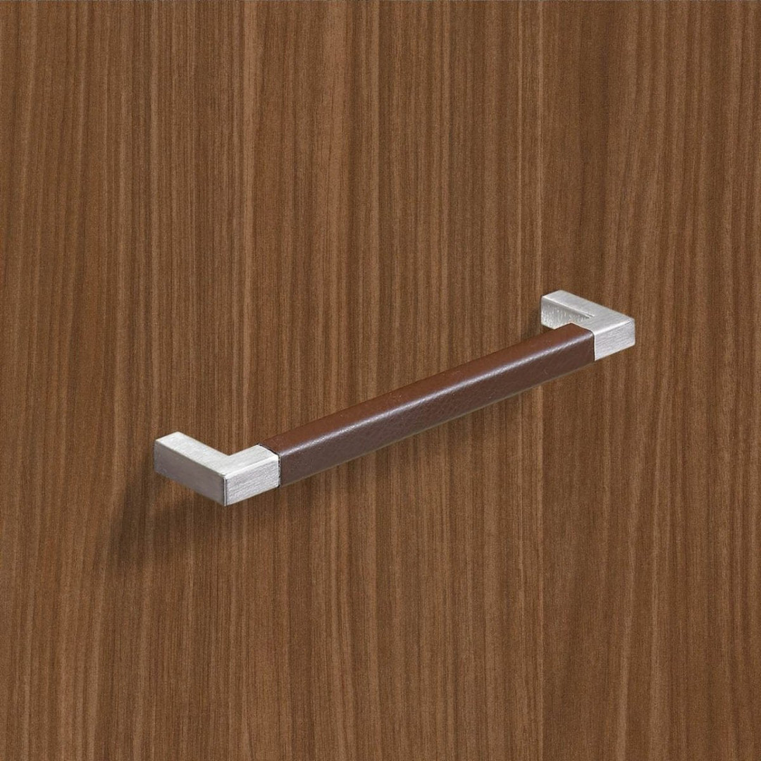HETTICH Möbelgriff "Getafe" - Leder hellbraun / Edelstahl gebürstet - BA 224mm