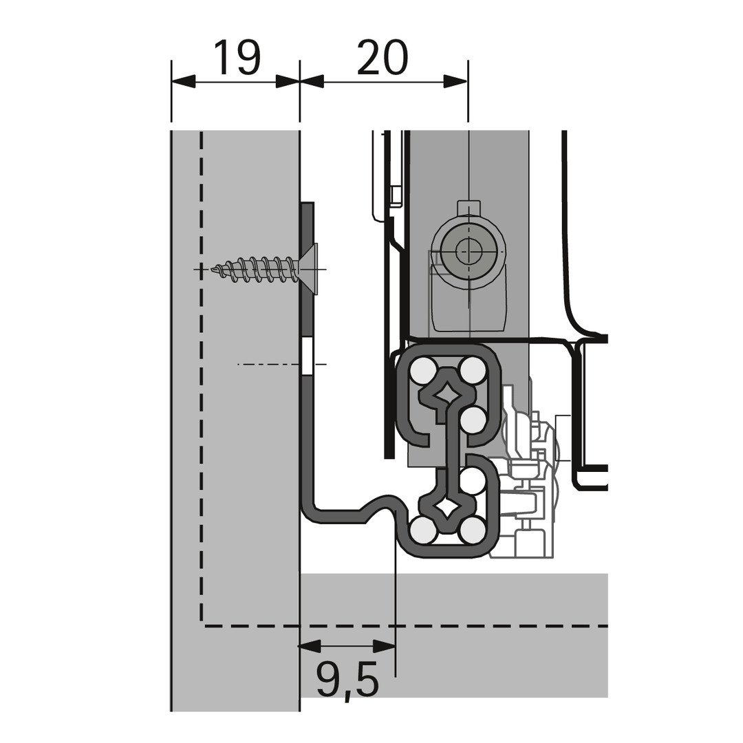 | Einbaubreite / Korpusseitendicke | EB 9,5 (Korpusseitendicke 19 mm) |