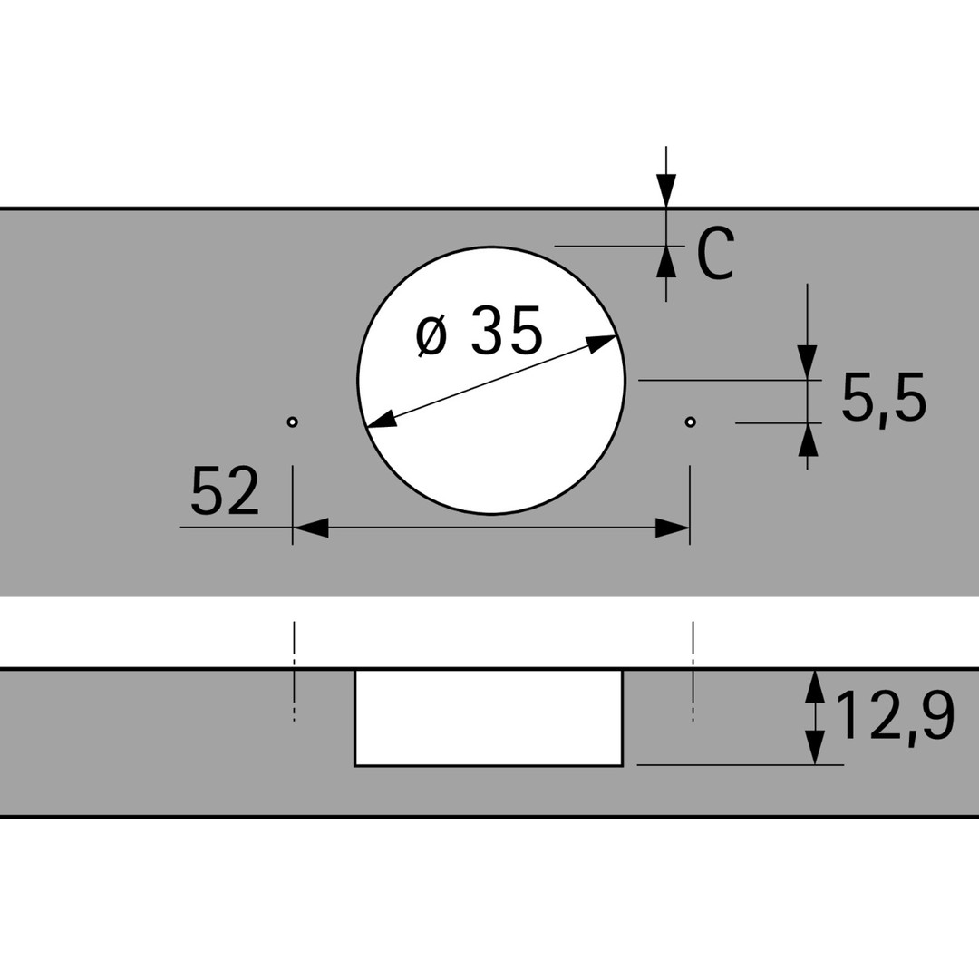 HETTICH Sensys 8639i W20 Scharnier gedaempft vor liegend B6,5mm 52x5,5mm anschrauben NI