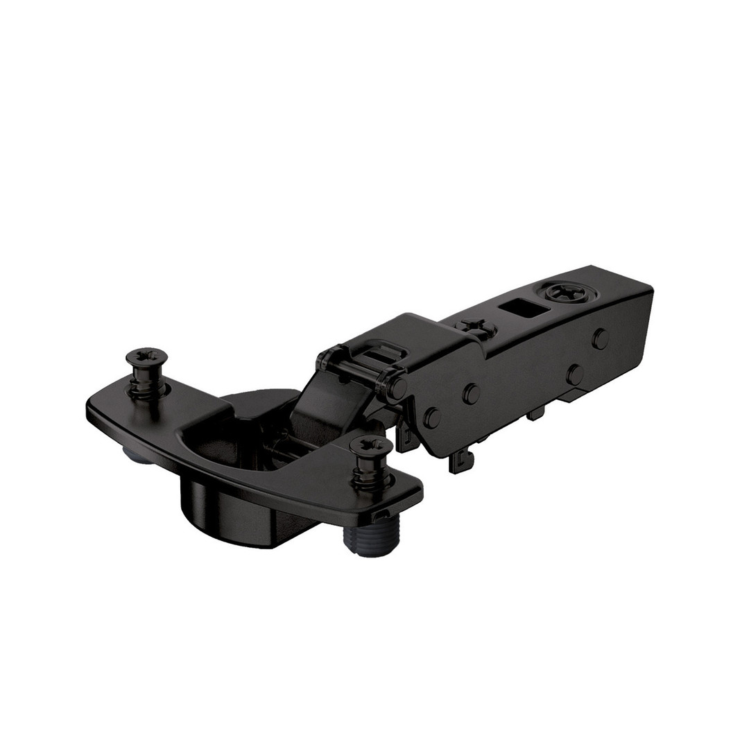 Hettich Sensys Dicktürscharnier, Türdicke bis 32 mm, ohne Schließautomatik (Sensys 8661), in obsidianschwarz, halb vorliegend, Öffnungswinkel 95°, TH-Bohrbild 52 x 5,5 mm, mit Spreizmuffen (ø 10 x 11)