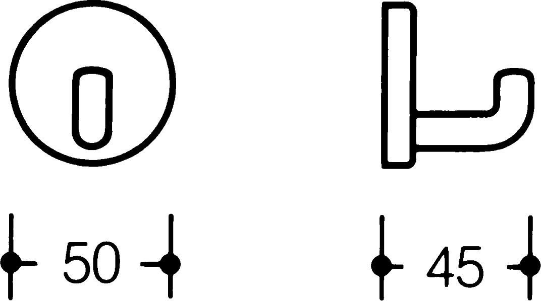 HEWI Einzelhaken, klein der Serie 477 rechtwinklig gebogener, zylindrischer Haken mit Befestigungsrosette, diebstahlgeschützt durch verdeckte Verschraubung, 45 mm tief, Rosettendurchmesser 50 mm, aus hochwertigem Polyamid nach HEWI Farbtabelle, Lieferung ohne Schrauben und Dübel.