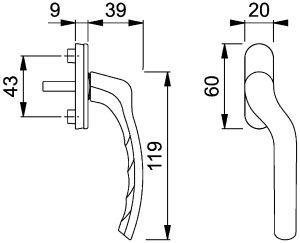 Fenstergriff gekröpft 0710LVK / U71 Z