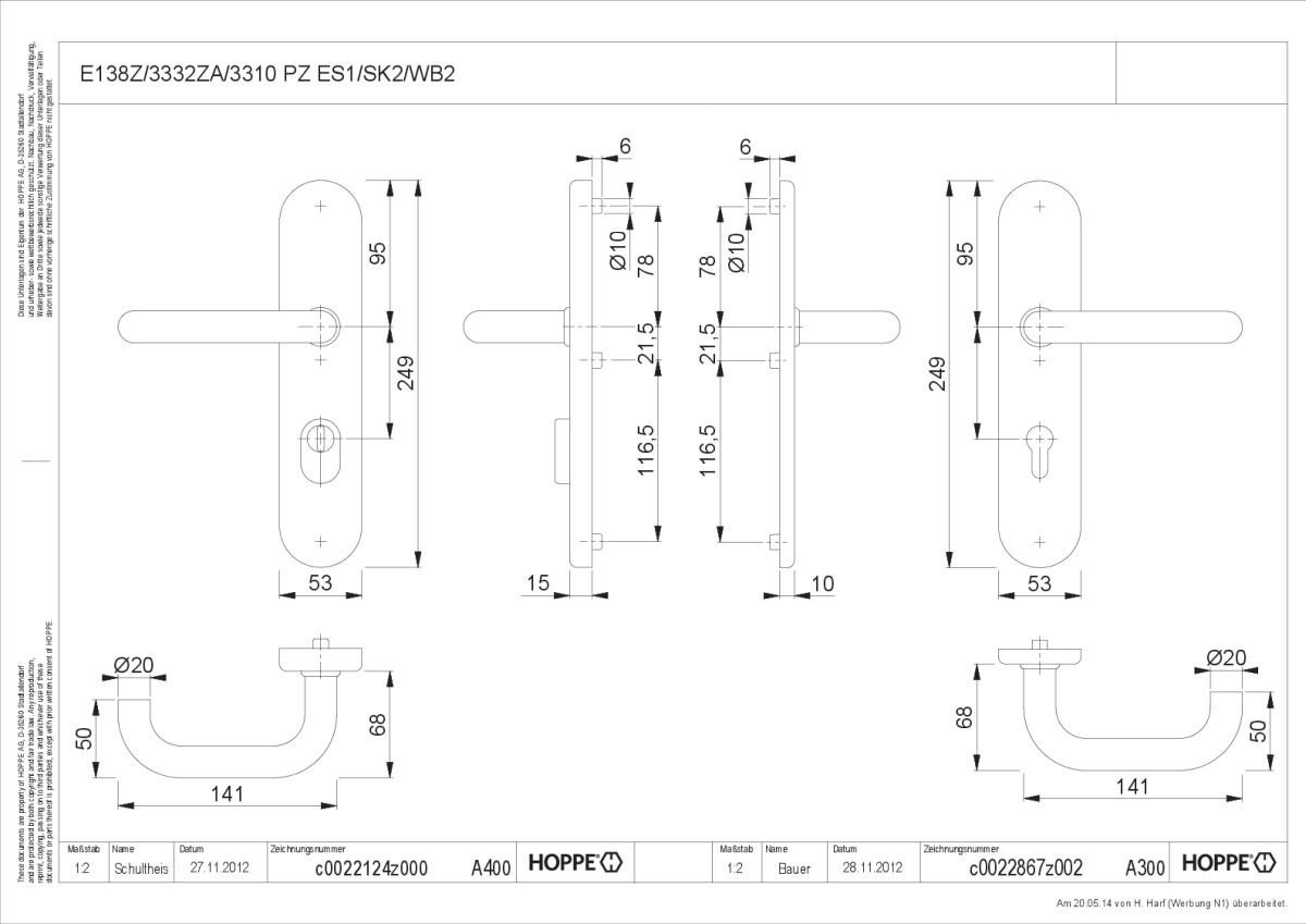 HOPPE-Edelstahl-Schutz-Langschild-Türgriff-Garnitur mit Zylinder-Abdeckung für Außen-/Wohnungsabschluss-Türen