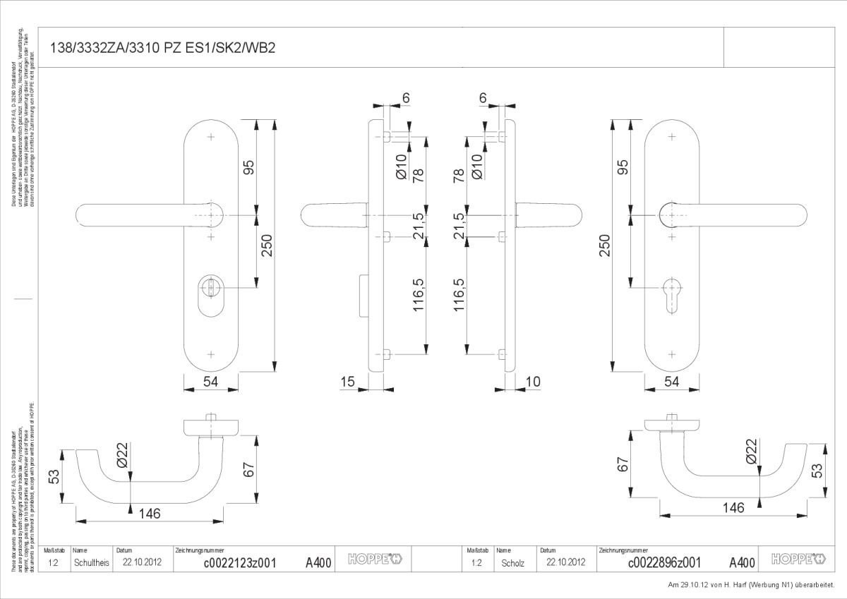 HOPPE H.T. Schutz Drückergarnitur PZ 92 ZA SK2 Paris F1