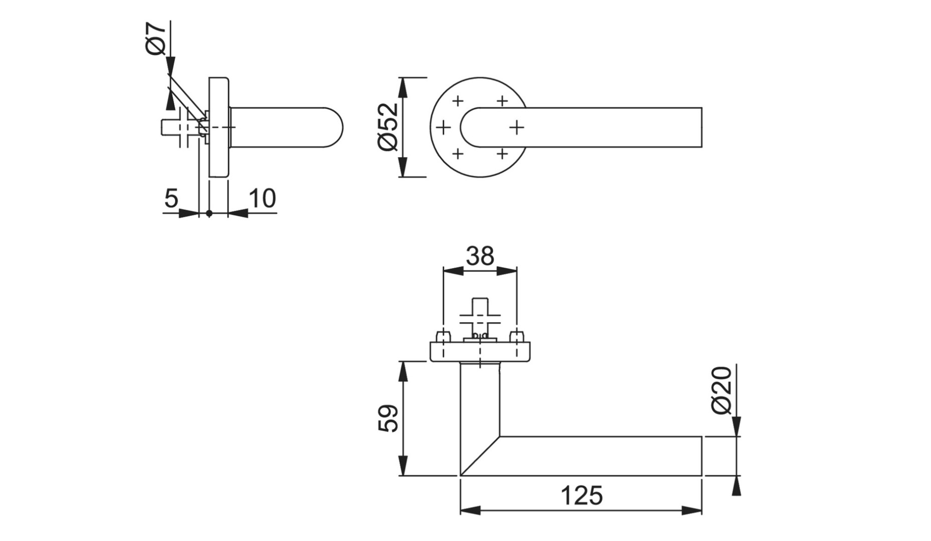 - Lagerung: Türgriff lose, Rückholfeder rechts/links verwendbar, wartungsfreies Gleitlager