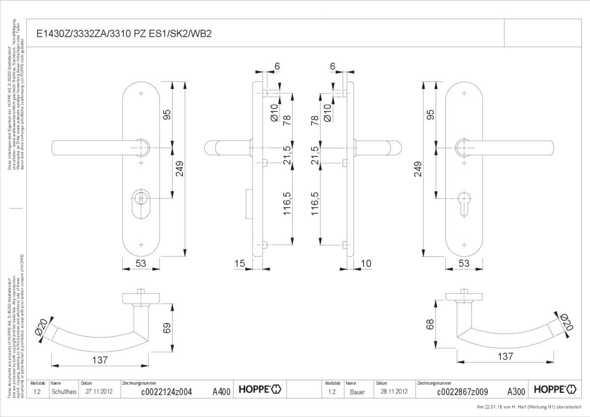HOPPE-Edelstahl-Schutz-Langschild-Türgriff-Garnitur mit Zylinder-Abdeckung für Außen-/Wohnungsabschluss-Türen