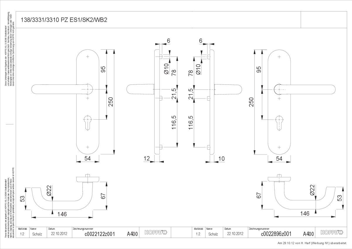 HOPPE-Aluminium-Schutz-Langschild-Türgriff-Garnitur für Außen-/Wohnungsabschluss-Türen