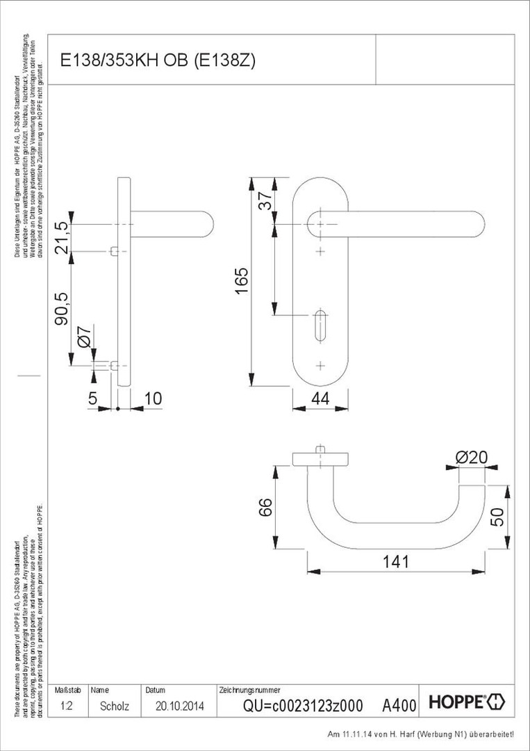- Lagerung: Türgriffe fest/drehbar, Rückholfedern, HOPPE-Steckgriff-Verbindung mit Kugel-Arretierung Sertos ®, wartungsfreie Gleitlager