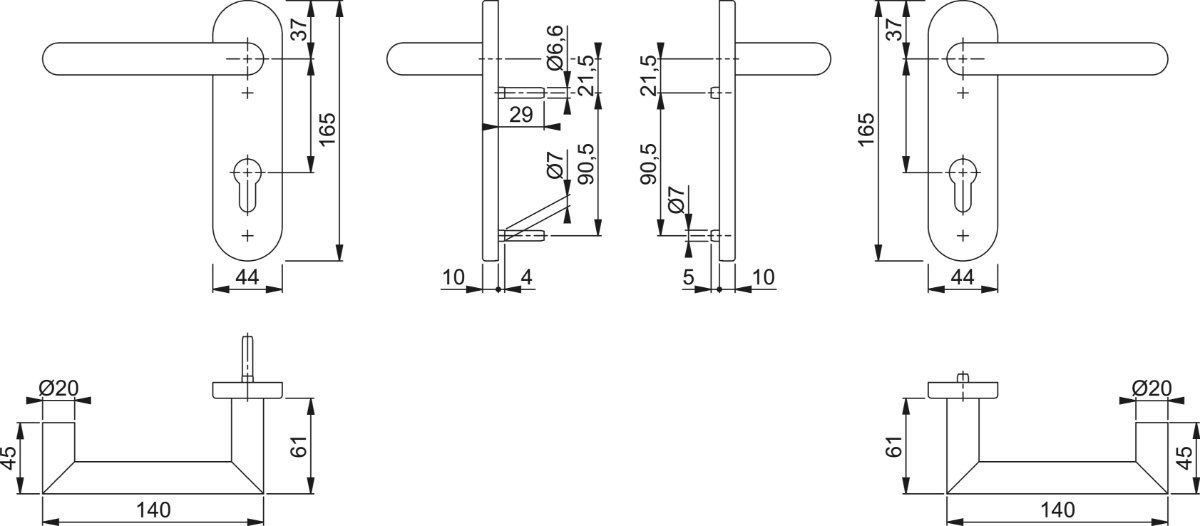 - Lagerung: Türgriffe fest/drehbar, Rückholfedern, HOPPE-Steckgriff-Verbindung mit Kugel-Arretierung Sertos®, wartungsfreie Gleitlager