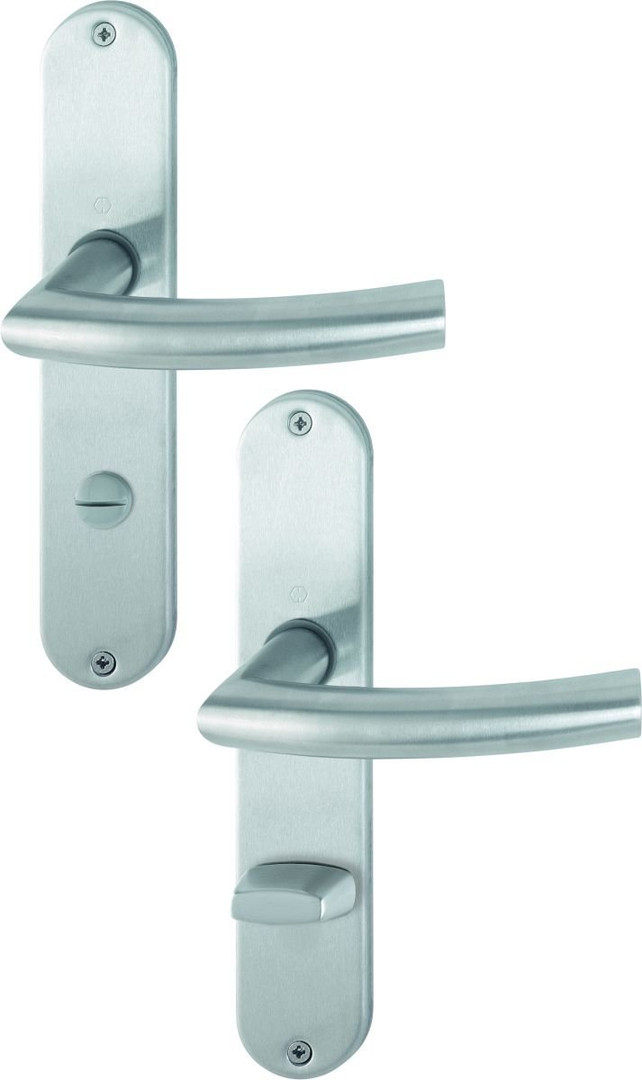 HOPPE-Edelstahl-Langschild-Türgriff-Garnitur mit Schlitzkopf/Olive für Bad/WC-Türen