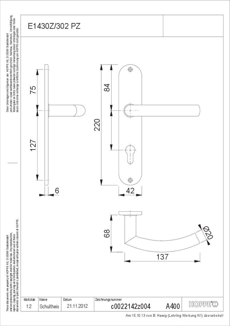 HOPPE Obj.-Langschild-Drücker-Garnitur "Trondheim" - Edelstahl - PZ