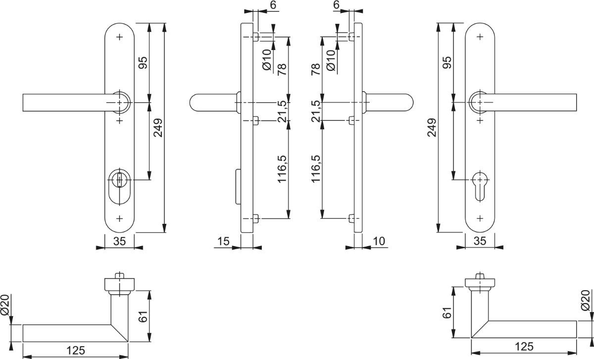 Ausführung: Schmalschild-Garnitur mit Zylinder-Abdeckung
