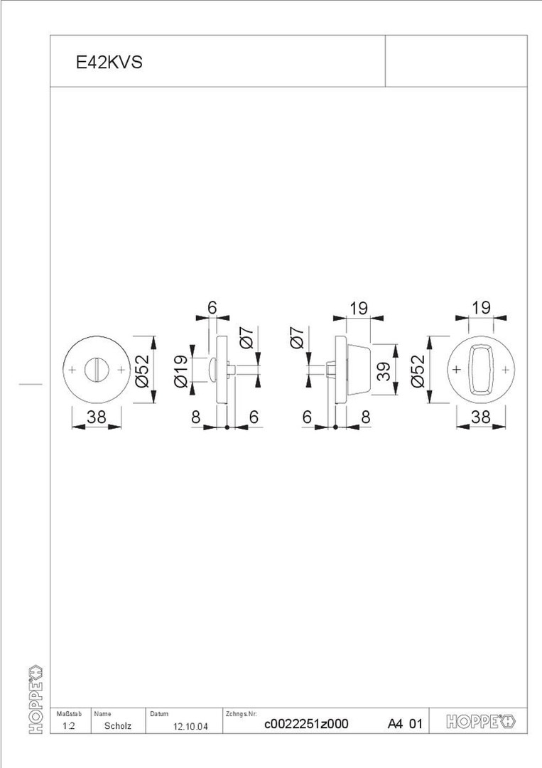 HOPPE Schlüsselrosettenpaar E42KVS, Edelstahl F69, WC