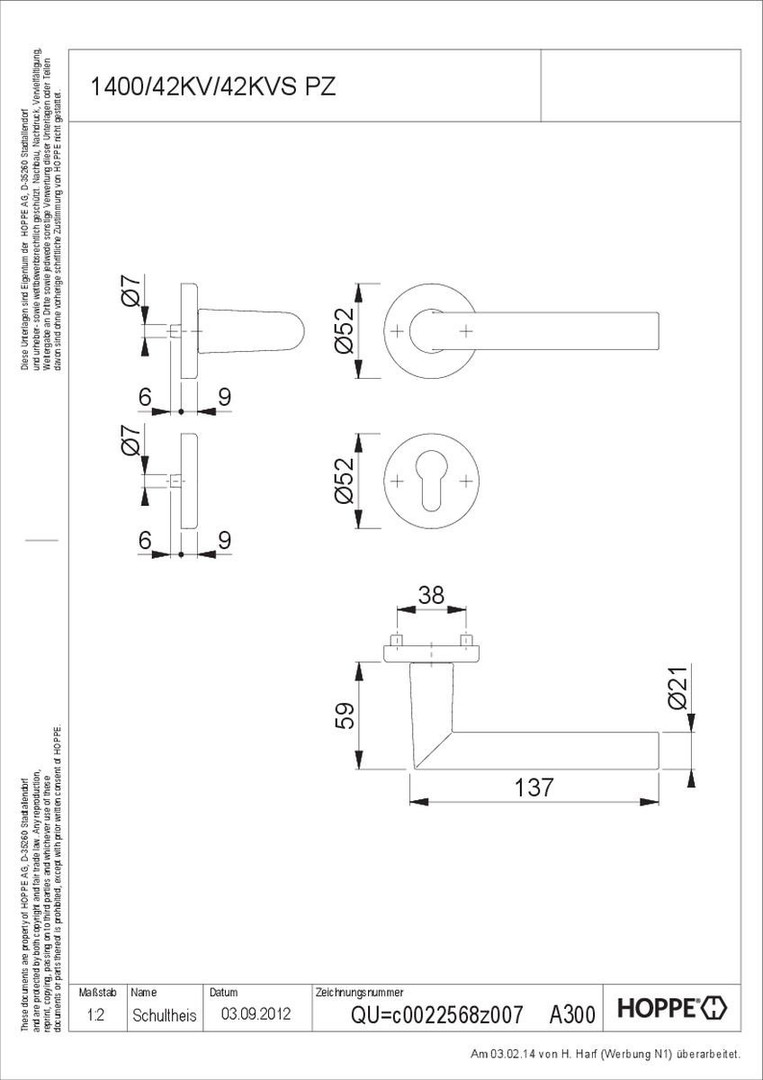 HOPPE Z.T. Drückergarnituren F1 mit SSV Amsterdam PZ