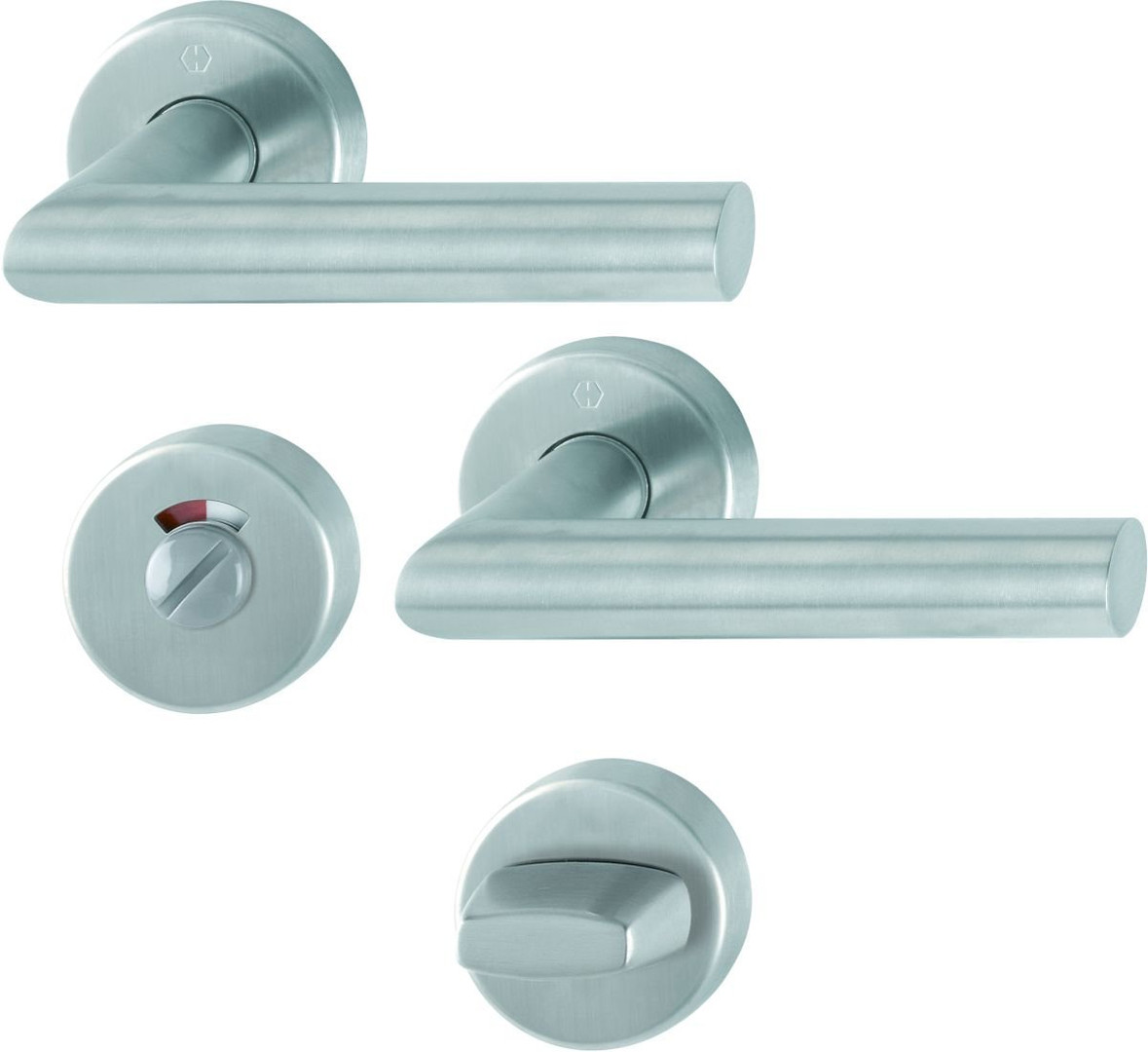 HOPPE-Edelstahl-Rosetten-Türgriff-Garnitur mit Schlitzkopf/Olive und Rot/Weiß-Scheibe für Bad/WC-Türen