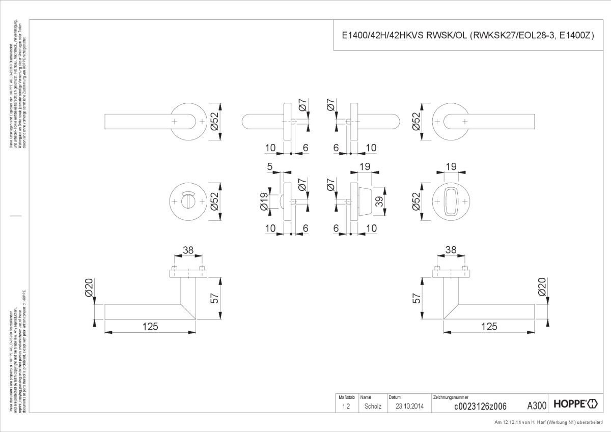 • Lagerung: Türgriffe fest/drehbar, Rückholfedern, HOPPE-Steckgriff-Verbindung mit Kugel-Arretierung Sertos ®, wartungsfreie Gleitlager