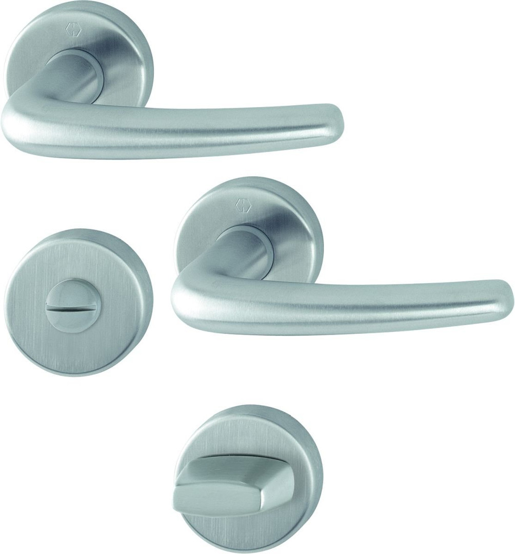 HOPPE-Edelstahl-Rosetten-Türgriff-Garnitur mit Schlitzkopf/Olive für Bad/WC-Türen