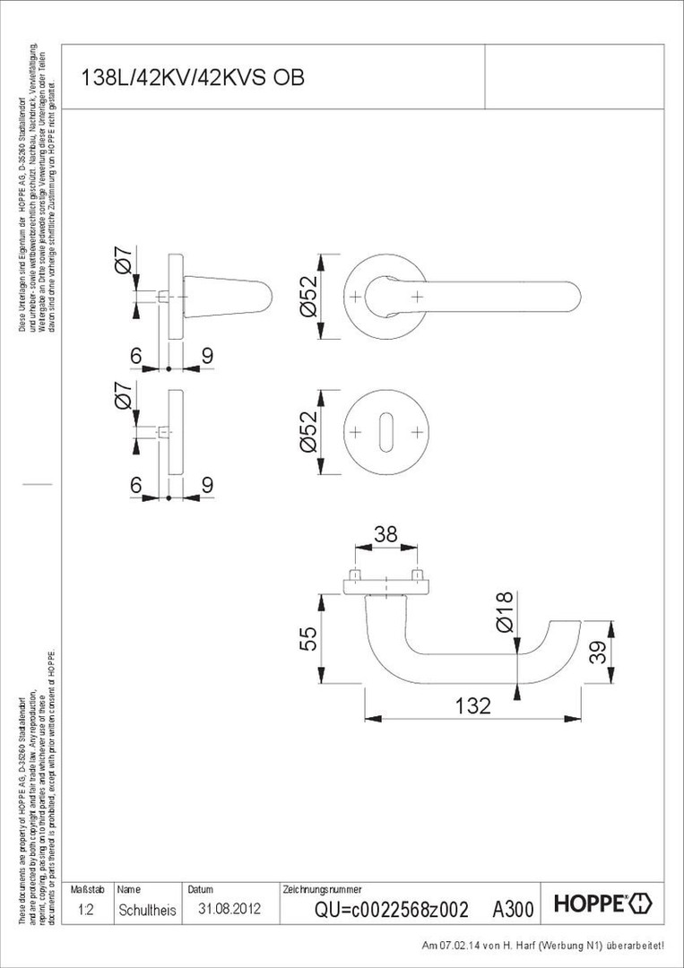 HOPPE Z.T.Rosettengarnitur Paris 138L/42KV/42KVS BB F1