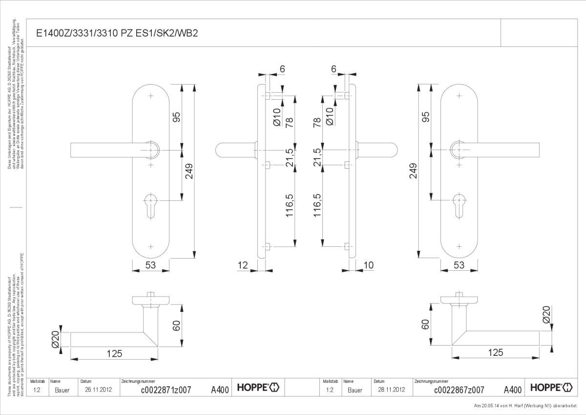 HOPPE-Edelstahl-Schutz-Langschild-Türgriff-Garnitur für Außen-/Wohnungsabschluss-Türen