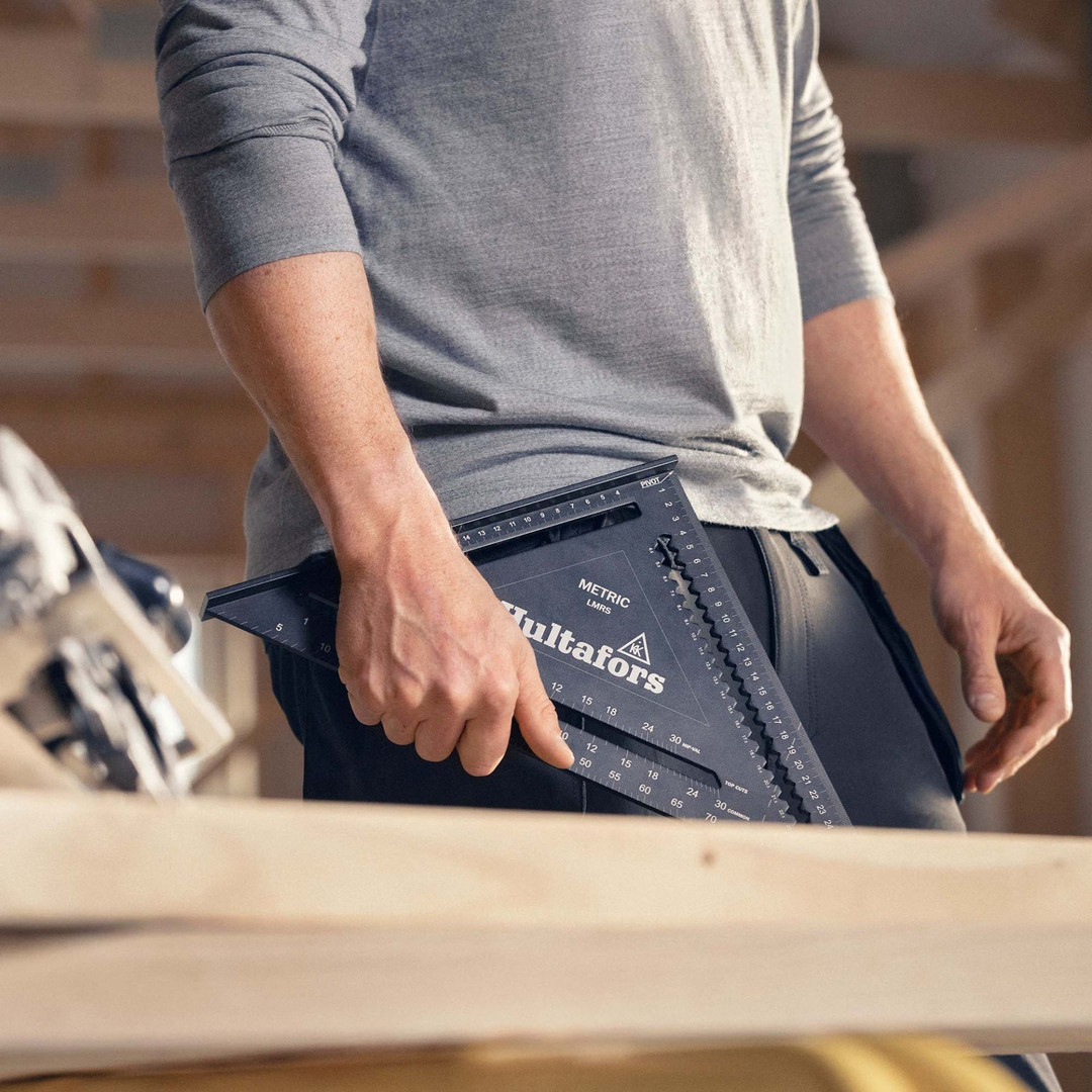 Der Rafter Square ist ein äußerst vielseitiges Werkzeug für alle Handwerker. Sie können es für die genaue Markierung von 45 ° und 90 ° Winkeln verwenden. Es kann auch als Winkelmesser verwendet werden, um andere Winkel einfach zu messen und zu markieren. Die dicke und robuste Kante dient auch als Orientierung bei der Arbeit mit Elektrosägen, zum Sägen in einem Winkel von 45° und 90° und mit etwas Fingerfertigkeit oder einer Klemme auch für andere Winkel. Das Sparrenquadrat hat auch Kerben, mit denen Linien entlang einer Kante mit einem Bleistift gezeichnet oder direkt mit einem Messer geschnitten werden können, wenn mit Trockenbau gearbeitet wird. Und natürlich hat die mittlere und große Version den Originalmaßstab zum Sägen von Satteldach- und Walmdachbindern und Dachziegeln.