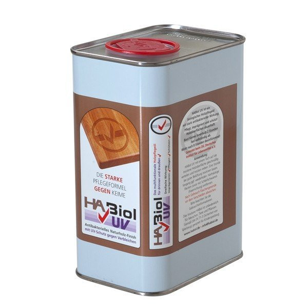 HABiol UV Holzpflegeöl ist eine systematische Weiterentwicklung von HABiol Holzpflegeöl. HABiol UV Holzöl wirkt der Beeinträchtigung von Holzoberflächen durch Sonnenlicht entgegen. Dadurch werden Schäden, durch immer aggressiveres UV-Licht deutlich verringert, es ermöglicht nicht nur effektiven Holzschutz, sondern erhält gleichzeitig den natürlichen Farbton des Holzes und gewährleistet somit die Wertehaltung. Das Holz erhält einen 3-fach Wirkung: imprägnieren, pflegen und schützen.