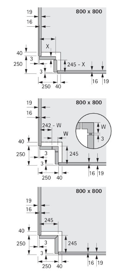 - ø 810 mm (für Korpus 900 x 900) bzw. ø 710 mm (für Korpus 800 x 800)