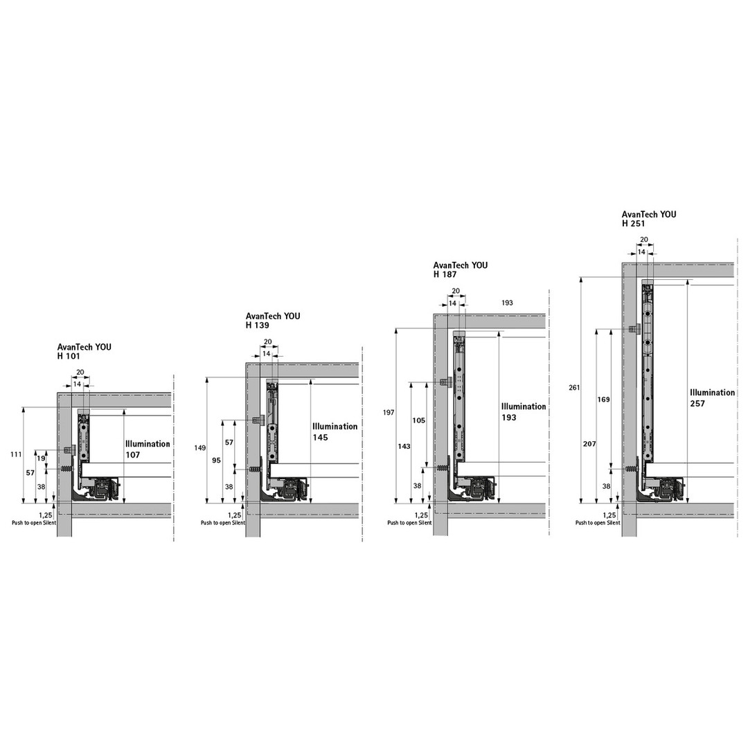 - Optional nachrüstbar bei Systemhöhe 101 / 139 / 187 / 251 mm