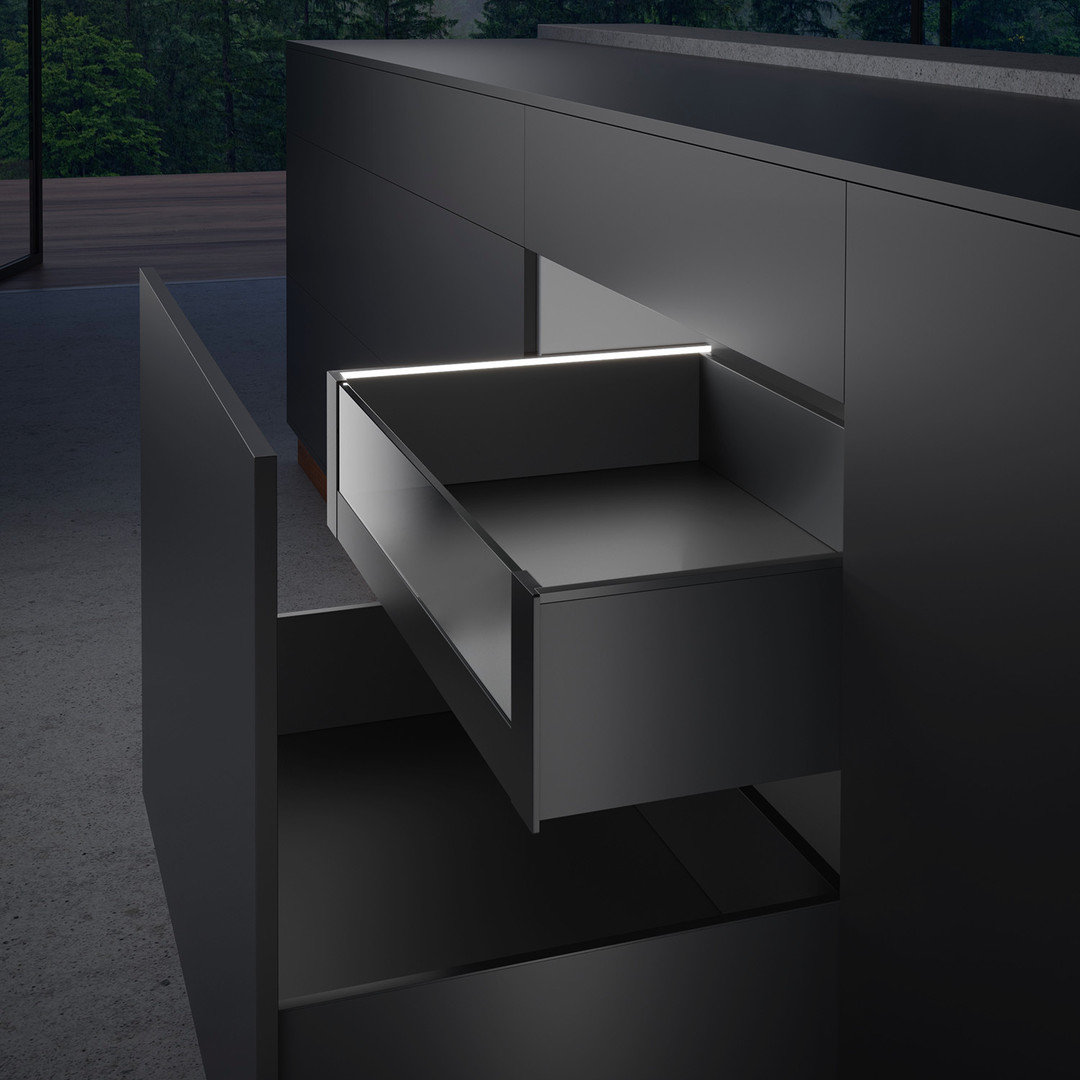 Hettich AvanTech YOU Set Verbinder für gestaltbare Innenfront, Systemhöhe 187, anthrazit, Für Zarge mit Illumination