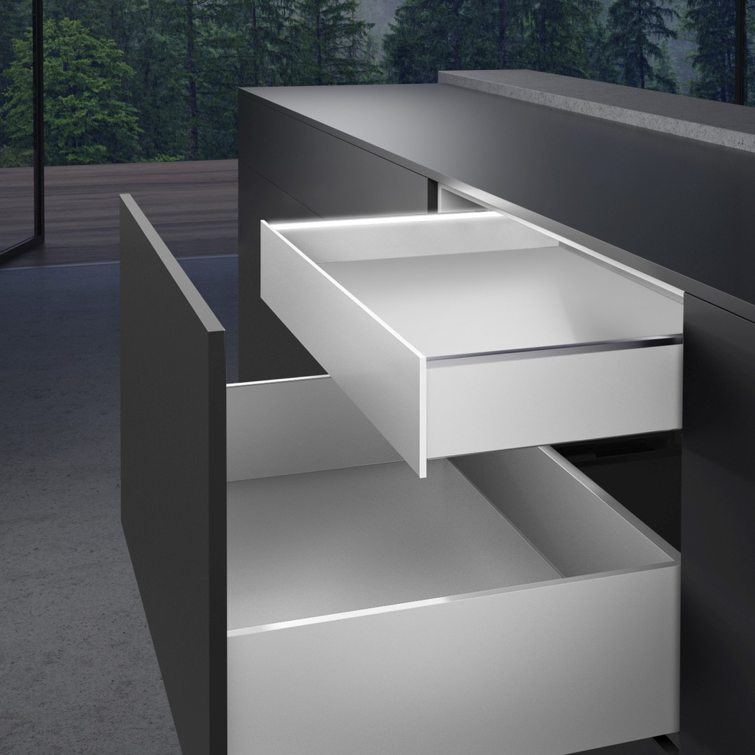 Hettich AvanTech YOU Verbinderset für Innenfront zum Selbstablängen, Systemhöhe 139, weiß, Für Zarge mit Illumination