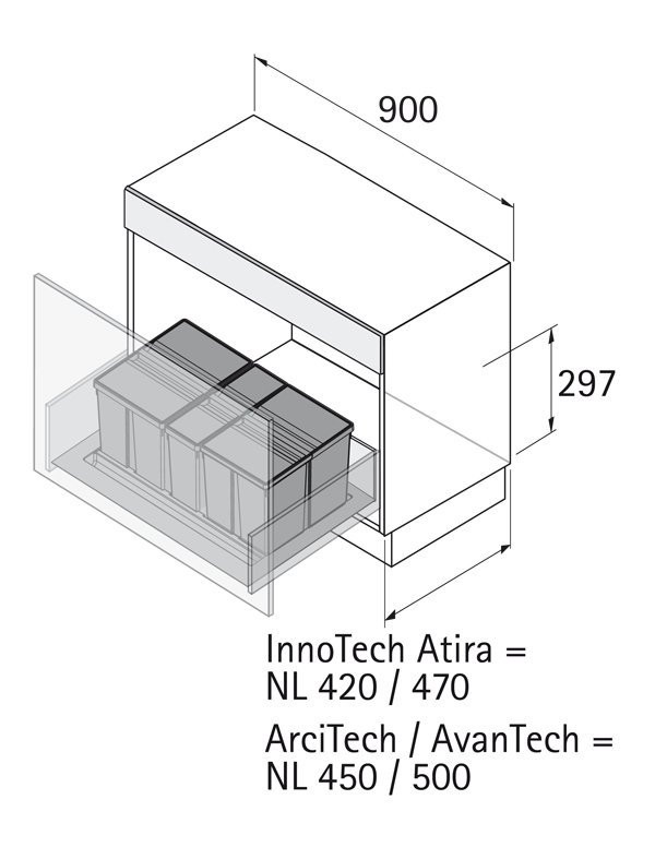 Nennlänge (NL) 450 / 500 mm oder für InnoTech Atira, Nennlänge (NL) 420 / 470 mm - Für Schrankbreite 900 mm