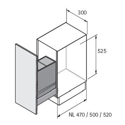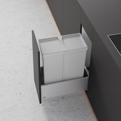 - min. Breite 205 mm, min. Tiefe 400 mm Einlegeplatte, Eimer und Deckel Kunststoff grau