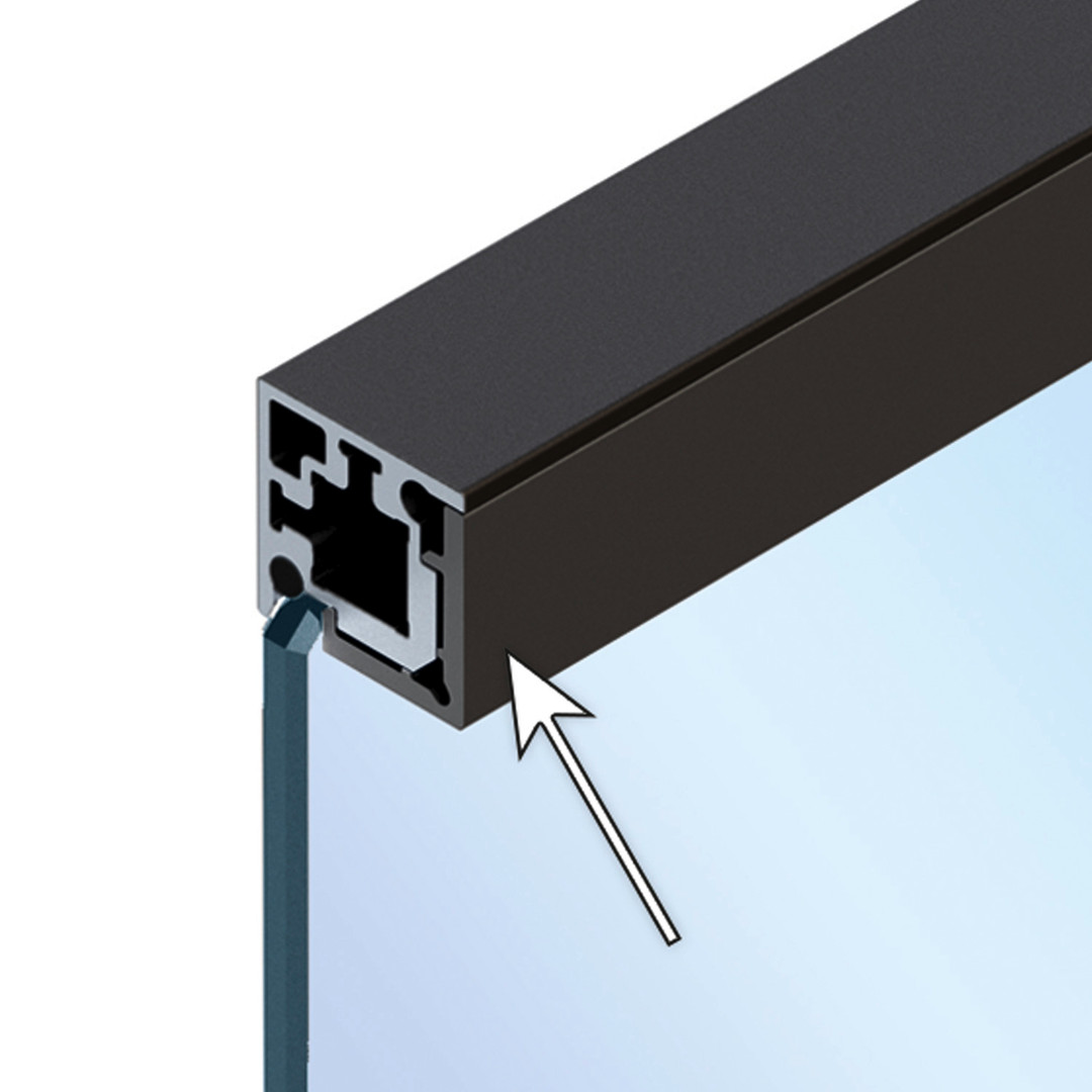 • Zur Fixierung eines 4 mm Glaselements (ESG Sicherheitsglas), die andere Profilseite ist geschlossen, z.B. für eine Türfläche