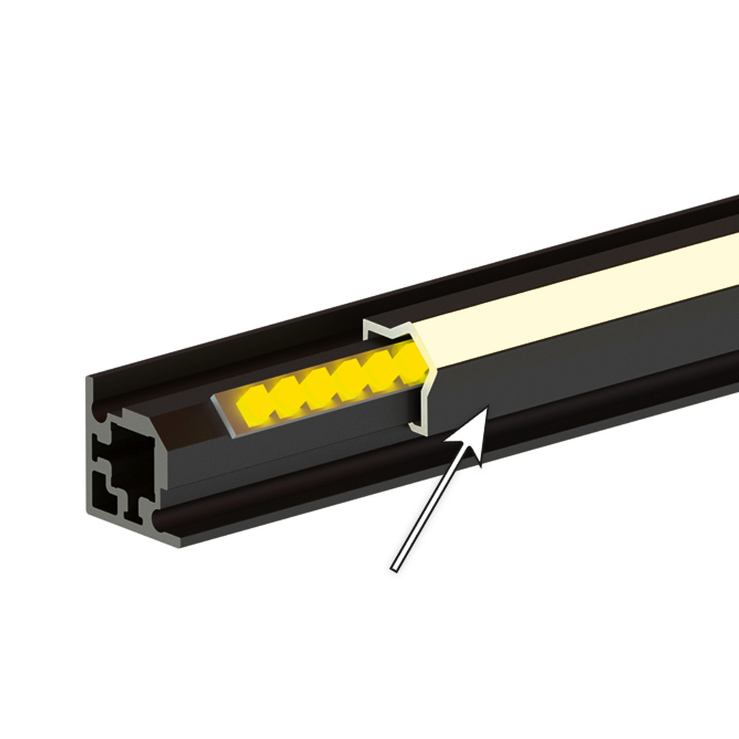• Durch das transluzente Abdeckprofil wird der Schrankinnenraum beleuchtet