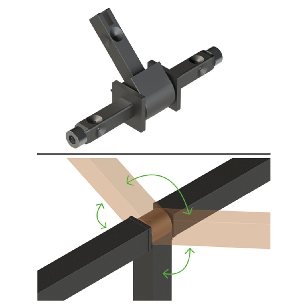 • Der T-Stück Verbinder wird zwischen zwei Profile gesetzt und ein weiteres kann im variablem Winkel bis 360 Grad angesetzt werden