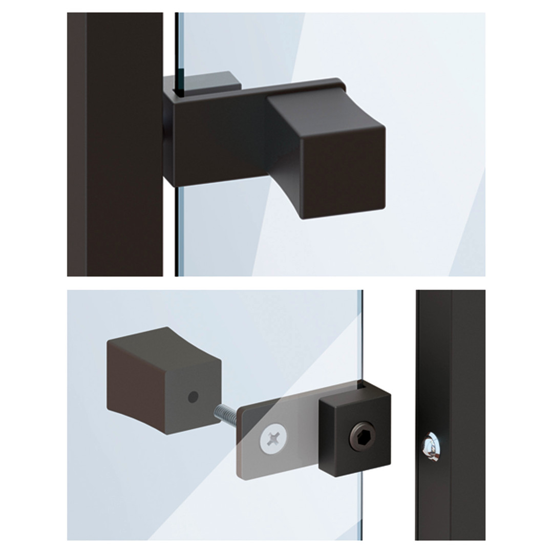 • Klemmbefestigung, keine Bohrung der Glastür notwendig