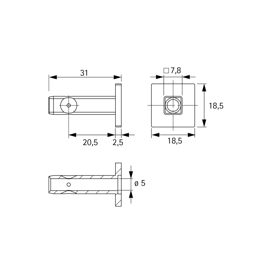 Hettich Cadro Wand- / Bodenbefestigung 18 x 18 mm schwarz matt