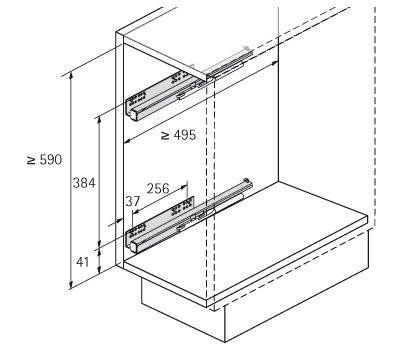 - Lichte Mindestkorpusmaße - Breite 162 mm - Tiefe 495 mm - Höhe 590 mm