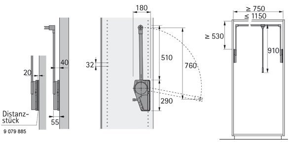 - Teleskop-Breitenverstellung für lichte Korpusbreite 750 - 1150 mm